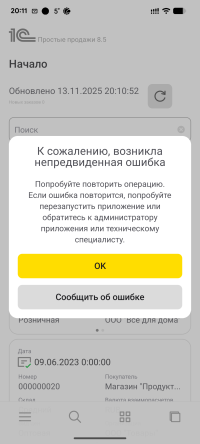 (233) Что там хорошего с мобильным 1С 8.5? (Картинки - ошибки с телефона Google Pixel7a, Android 16)