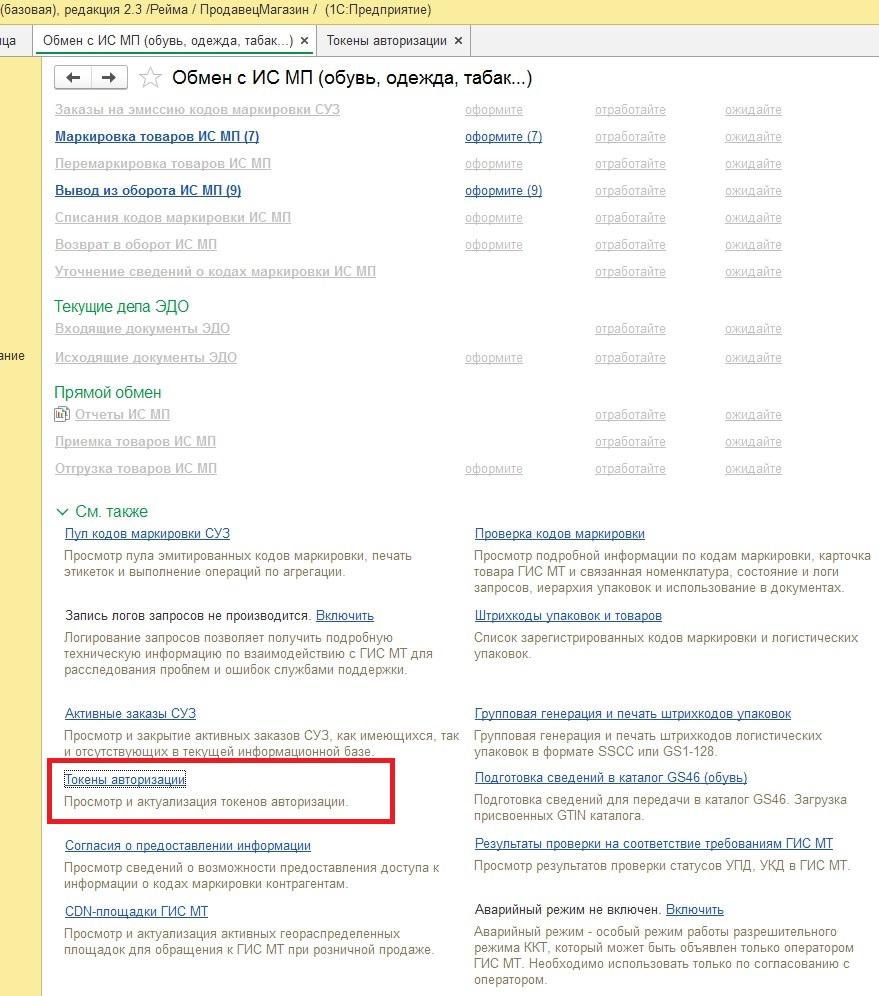 +(5) Мне сложно понять логику, не видя этого и не "щупая" руками... Но, что-то подсказывает мне, что нужно где-то в настройках смотреть, ИМХО продажа на кассе и проверка марки по разрешительному режиму, ничего общего с авторизацией в ГИС МТ не имеет...