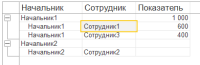 (4) вот как выводит отчет, можно сделать, чтобы "Начальник" не повторялся в группировке "Сотрудник" ?