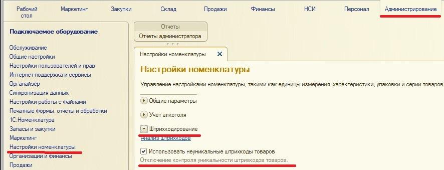 | 1С: Розница 2.4 - Одинаковый GTIN на товары с разным EAN | ☑ | ||