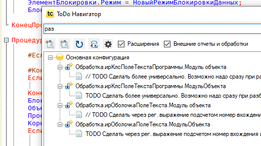 7. Прыжок в начало метода - штатная возможность конфигуратора CTRL+ALT+P, Enter. Прыжок по одной конструкции языка - тоже CTRL+[ и CTRL+].