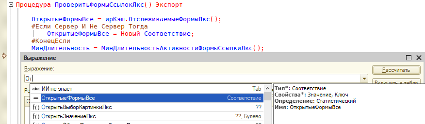 1.Автодополнение в табло отсутствует. Но есть в окне "Выражение". Так выглядит с ИР адаптером