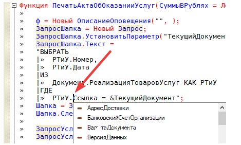 Еще есть автодополнение для языка запросов прямо в редакторе модуля