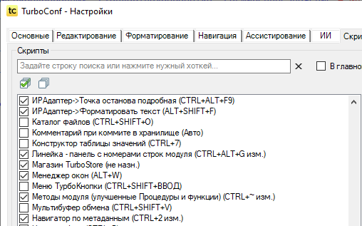 8. Назначение горячих клавиш есть для любых команд (штатных и добавленных скриптами)
